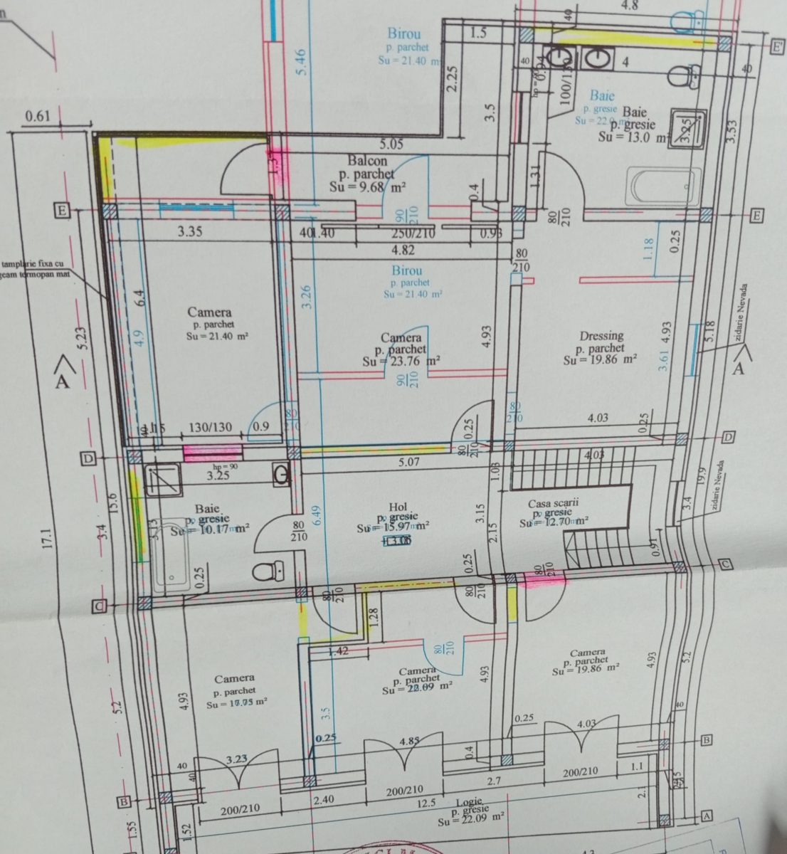 Situată pe un teren de 1400 mp, construcția, cu arhitrctută mediteraneană, însumează o suprafață totală construită de 801 mp, respectiv 540 mp utili