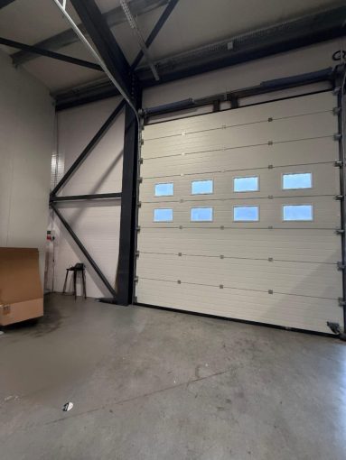 1 poarta secționala ( 4x 4,5 ) actionat electric, cu hublouri pentru mai multă lumină interioară,
