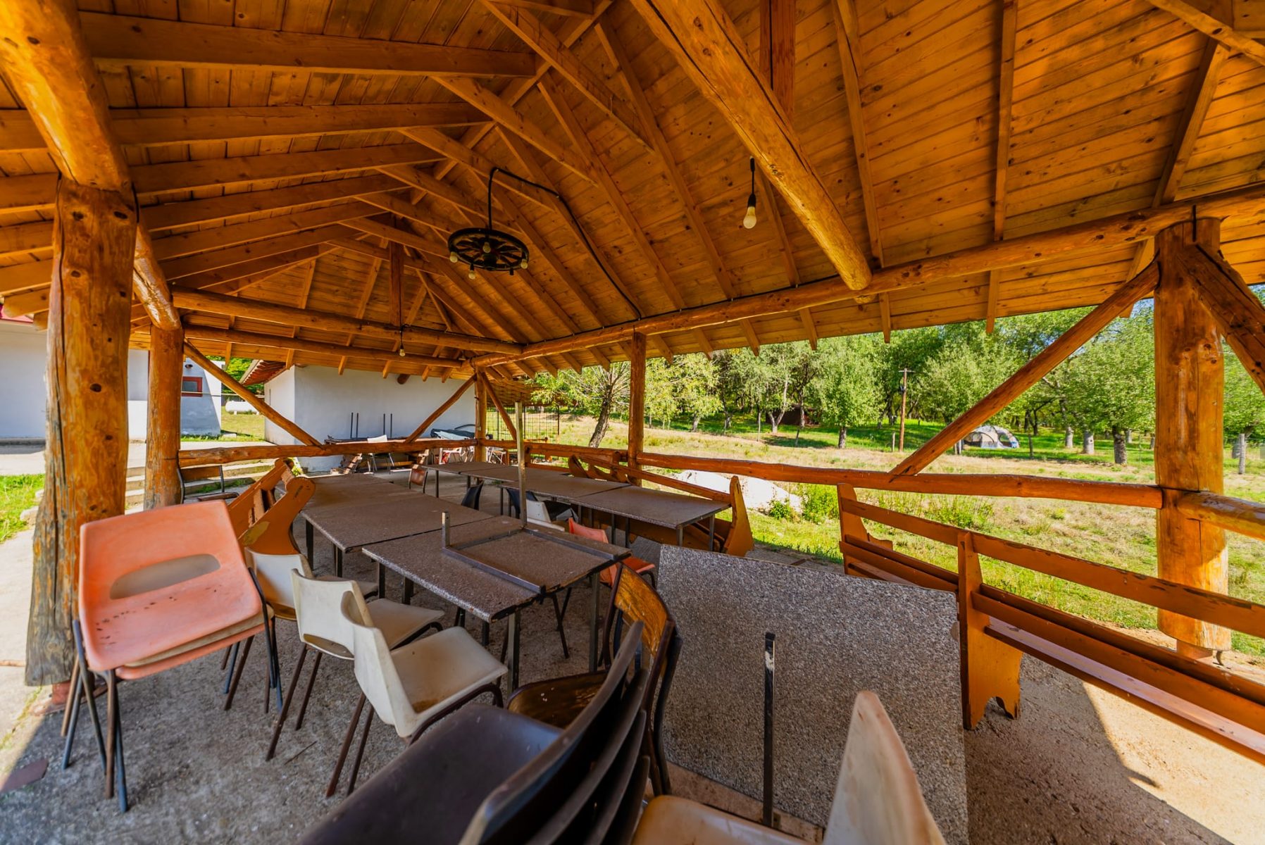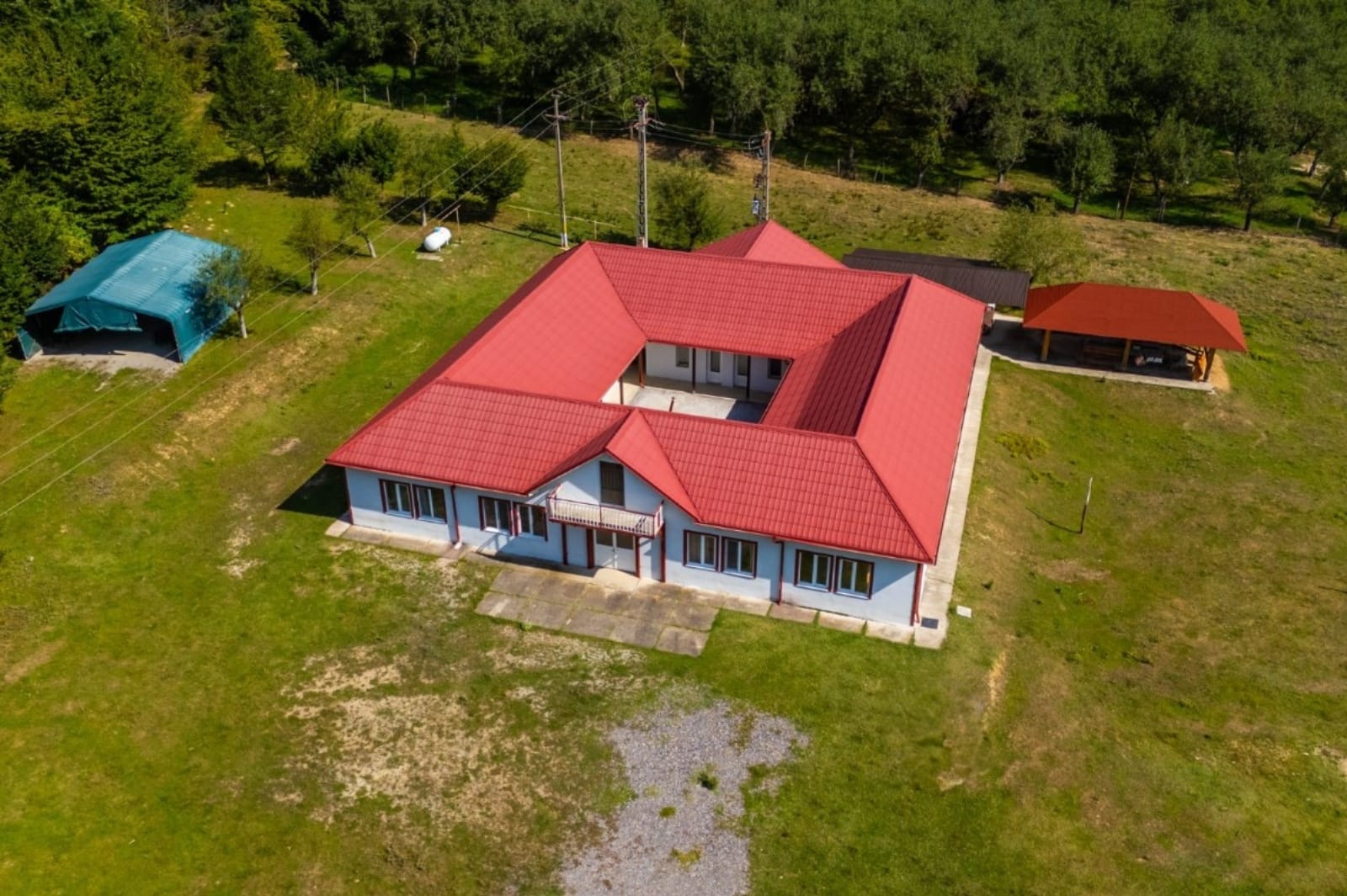 Mai avem o anexa unde avem centrala care asigura caldura cu gaz din butelia de capacitate mare din curte. Mai avem o terasa spatioasa din lemn pe fundatie din beton, de asemenea avem cort de 100 mp pentru evenimente in exterior dar si toalete de exterior (fete si baieti). Toate constructiile sunt intabulate in cartea funciara, terenul avand masuratori in sistemul stereo 70 al Oficiului de Cadastru din Romania.