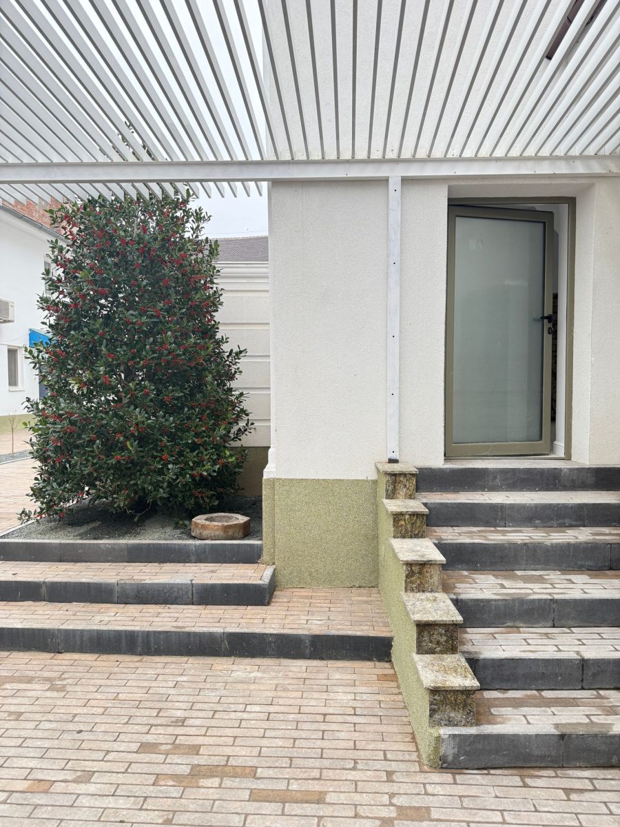 Proprietatea beneficiază de o curte modernă, bine integrată în conceptul general, oferind un ambient curat, actual și profesional.